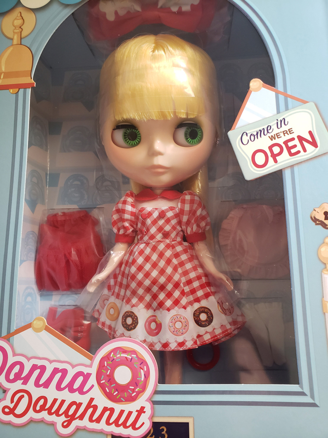 Here are the final specifications for Neo Blythe “Donna Doughnut”. *FREE SHIPPING FEE* *Shipping address are subject to the address of your PayPal transaction. Donna makes doughnuts at a small doughnut shop in Manhattan. A ring of sweetness with cinnamon and sugar always brings the customer back for more. Donna is the best doughnut maker there is ! And the doughnuts are the tastiest in the world! Donna wears a donut store uniform, which consists of a one-piece dress, a pinafore-type apron, and a ruffled and ribboned hairband. The doughnut illustration print on the hem of the dress, the melted white chocolate print on the ribbon of the hairband and the bead embroidery that resembles toppings add a cute touch! Red shoes to match the uniform complete the coordinated look! A doughnut take-out box is included. [Face Type] Radiance Evolution [Face Color] Fair [Makeup] ?Eyeshadow: Light green ?Lips: nude pink (plump) ?Blush: Salmon pink (tinted slightly above the cheeks) Eye Color: Light green (right *special color), blue (front), green (left), pink (front) [Eyelid] Default [Eyelashes] Default / Black [Hair Color] Light blonde hair with yellowish tint [Piercing] Yes (silver, ribbon type) [Manicure] Yes (red) [Set Contents] Doll, dress, apron, headband, panniers, shorts, socks, shoes, earrings, paper accessories, stand (waist restrainer) Release date: August 30, 2024 (Friday) We accept payment by PAYPAL, VISA and WESTERN UNION Thank you. Please don't hesitate to contact us at cctoyshop@yahoo.com.hk if you have any question about this product.