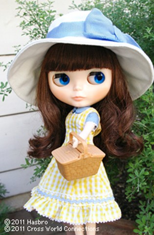 Neo Blythe Petit de'jeuner Champs Elysees *FREE SHIPPING FEE* *Shipping address are subject to the address of your Paypal transaction. Petit de'jeuner Champs Elysees dreams of becoming a musical star! She is going on a picnic with her favorite picnic basket and a summer hat as she sings and dances along the way. She is wearing yellow A-line shaped gingham check dress. Small lace, frills and wavy ribbon is attached around the hem. A tiny yellow ribbon is attached in the back of her waist. Under her dress, she is wears a short sleeve sky blue blouse. The same sky blue color ribbon is also attached on her white hat. Her white ribbon shaped earrings and the picnic basket are the new items from the Blythe accessories collection. To complete her look, she wears lacy socks with cute strap shoes. Petit de'jeuner Champs Elysees is always singing and that makes the people around her smile. Her best friend is the bright summer sun. She is dressed for a picnic with a light blue blouse with gingham check dress and white Mary Jane shoes. To complete her summer fashion, she is wearing a white summer hat with a big sky blue ribbon. The doll comes with a set of ribbon earrings and a basket case. She has long chocolate-brown permed hair with bangs. Her make-up is mint green eye shadow and orange blush and lipstick .Her eyes are a special cobalt blue color. The face type is radiance and the skin type is natural. [Face Type]Radiance [Skin Type]Natural Skin [Make-up]Eye Shadow: Mint Green, Lip: Orange, Cheek: Orange [Eye Color]Cobalt Blue *special color (right),Pink (front), Orange (front), Green (left) [Hair Color]Light Brown [The set includes]Doll, dress, blouse, hat, basket, earrings, socks, shoes, shorts, and doll stand. Release date: 22 July, 2011 We accept payment by PAYPAL, VISA and WESTERN UNION Thank you. Please don't hesitate to contact us at cctoyshop@yahoo.com.hk if you have any question about this product.