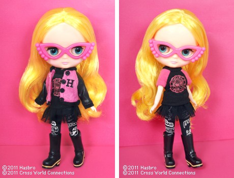 HYSTERIC MINI and Blythe's first collaboration, CWC limited Middie Blythe, "Suzi Hysteric" is arriving! *FREE SHIPPING FEE* Shipping address are subject to the address of your PayPal transaction. HYSTERIC MINI, a popular fashion brand for kids is known for their Rock and Pop sensibilities and their original character, "Mini". We are very excited to announce our first collaboration doll with HYSTERIC MINI. Speaking of HYSTERIC MINI, we remember very clearly, the Neo Blythe that they styled for the 9th Anniversary charity exhibition got a lot of attention at the charity auction! This time around it will be a collaboration using a MIddie Blythe! With HYSTERIC MINI's awesome fashion sensibilities, Middie is going to get a full on make over! Suzi's look is perfect for going out to see a rock show. Color coordinating choices with pink accents on black nods to their own character, "Mini" and its very cute! She comes with a Raglan T-shirt with an illustration of "Mini", a tulle mini skirt and Jumper with an embroidered image of "Mini" on the back. She wears Mini printed leggings and long boots, which is the first for a Middie Blythe. Suzi wears Mini's trademark sunglasses and heads to the stage. Her hair color is true to the image of Mini, in a vivd yellow! The hair is made for versatile hair arrangement, long curly hair and parted in the center, making it possible to put her hair up just like Mini. Have fun and explore the different kinds of hair arrangements you can have. Her eyes are set to blue, her skin type is Natural Skin, eye shadow is light blue, her cheeks and lips are pink. Release Date: 2011 November limited to 1,800 dolls We accept payment by PAYPAL, VISA and WESTERN UNION Thank you. Please don't hesitate to contact us at cctoyshop@yahoo.com.hk if you have any question about this product.