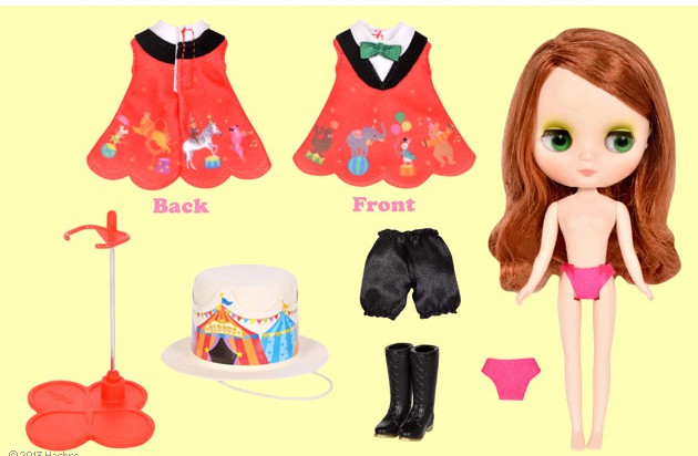 Blythe shop exclusive middie Blythe doll Lena Elena *FREE SHIPPING FEE* Shipping address are subject to the address of your PayPal transaction. "My parents are circus performers. My mother is the most elegant trapeze artist who ever lived. My Papa is the master of the circus. I'm the lucky daughter of these two fun people! I hope to be an elegant woman like my mother some day. I'll be the best circus performer in the world!" Lena Elena wears a fun stage costume that reflects the theme of the big top. She has pumpkin shaped bloomers under her cute jumper. Her color theme is red, black and white. Her top is printed with cute graphics of clowns, dancing bears and elephants! Her top hat has a cute big top printed around the brim. She also wears long faux-lace up boots. She has long, side parted hair in a loose perm. Her hair is brown. She wears natural and sweet make up in salmon pink lipstick and blush with green eyeshadow. She has Cream skin * Please note design image may differ from the final product. We accept payment by PAYPAL, VISA and WESTERN UNION Thank you. Please don't hesitate to contact us at cctoyshop@yahoo.com.hk if you have any question about this product.