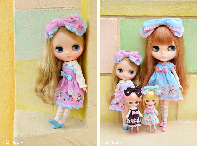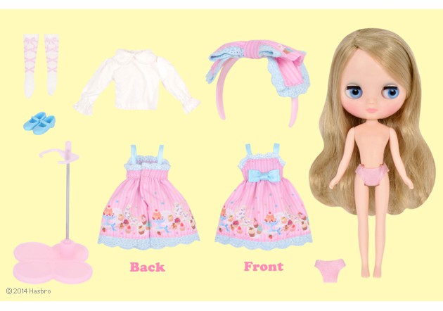 Welcome our sweet lolita Middie Blythe “Alicia Cupcake” Fluffy whipped cream, strawberries and cherries with colorful sprinkles. Let's make a sweet cupcake together! Neo Blythe Sadie Sprinkles, Petite Blythe "Connie Corneille" and "Ivanka Corneille" will bake with us. It's a fun lolita time! Alicia's dress is adorned with illustrations of soft whipped cream with berries and sweets. The pink jumpers is accented with baby blue lace and ribbons. Her stockings have cute pink laces printed on them. Her large matching hair bow is the perfect lolita head piece. Her little blue shoes complete the whole look. She has long, light brown hair with a side part and bangs. She has blue eyes. She wears pink cheeks and eyeshadow with blue eyeshadow. Her face color is natural. Skin Type: Natural Makeup: Blue eyeshadow, lip blush and pink lips. Eye Color: Blue Hair color: Light Brown The Set Includes: Doll, blouse, jumper, headbow, socks, shoes, underpants and stand. Release Date: November 14, 2014 We accept payment by PAYPAL, VISA and WESTERN UNION Thank you. Please don't hesitate to contact us at cctoyshop@yahoo.com.hk if you have any question about this product.