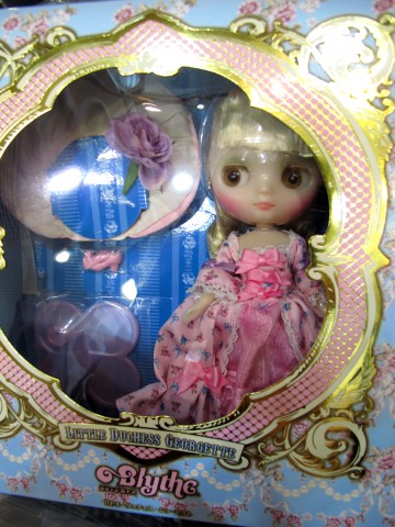 CWC limited 14 Anniversary is the Midi Blythe “Little Duchess georgette” final specification announcement. *FREE SHIPPING FEE* This year, theres not one but two girls who will represent 14 wonderful years of Blythe! Little Duchess Georgette, although small and cute, emits a charismatic presence. Her loveliness makes everyone around her smile! Music and art are an aristocratic interest! Demoing the finest fashions and music at a concert is just the first step to gathering ideas for the greatest garden parties. Little Duchess Georgette wears a dress made in the style of fashion that many ladies of the Rococo era loved to wear. Her rosy pink fabric with delicate lace and satin are wrapped with ribbons and frills, abundantly using romantic materials. The ribbons on her chest, the wide open sleeves, and long skirt ballooning from her waist... Little Duchess Georgette befits the title of Anniversary Doll with her impeccably coordinated fashion! To go with the dress, a cute bonnet decorated with a purple rose corsage accent and a mint green ribbon to tie under the chin. She also wears a rose printed pair of pink pumps! Her long blonde hair is slightly permed and cut above the eyes. Her skin is a translucent cream color, with green eyeshadow, light brown eye lids, with an especially made light brown eye lashes, giving her a refreshing and lively face. Her cheeks and lips are a delicate pink, with a slight brown line accenting the corners of her mouth. The stand is pink. Face type: Middie Blythe Skin type: Translucent Cream Make up: Eyeshadow: Green / Lips: A delicately blurred pink (with brown lines in the corners of the mouth) / Cheeks: Pink Eye color: Green Eye lids: Light Brown Eye lashes: Light Brown *Special specification (New Color) Hair color: Silvery Blonde (New Color) Earrings: Golden Ribbons Set includes: Doll, dress, panier, bonnet, shoes, shorts, stand Release Date: July 31st, 2015 We accept payment by PAYPAL, VISA and WESTERN UNION Thank you. Please don't hesitate to contact us at cctoyshop@yahoo.com.hk if you have any question about this product.