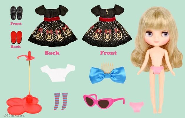 **Please note her outfit may have little mouldy / dusty from long storage.** The mouldy / dusty can be removed and no damage to it. Odani Miyuki X Blythe’s second collaboration, a Middie Blythe version of Margo Unique Girl is coming. Here are the illustrations for Middie Blythe “Melanie Ubique Girl”! *FREE SHIPPING FEE* Cute looks and a quirky character defined Margo Unique Girl, who debuted in 2012 and continues to be a popular Neo Blythe after it was sold out. Taking the character of Margo and transposing it as a Middie, "Melanie Ubique Girl" is coming this fall! Small but reliable, Melanie can't wait to be your friend! Melanie is constantly the center of everyone's attention and affection, but because of that, she's also really busy. She's running around across town all the time, but if you talk to her she'll always hang out. She'll take you to shows, shopping, or even just a peaceful walk. That's because Melanie always loves to spend time with her friends. Her black dress, the large ribbon on the top of her head, and unique glasses make a big impact! The color coordination for her outfit is black, red, blue, and pink. She takes a lot of cues from Margo, but the details are all her. The black dress is adorned with ribbon and heart motifs at the top, with a M embroidered on the emblem, and her skirt is speckled with cute dots. She also wears bordered high socks and strap shoes, holding nothing back when it comes to fashion. Her hair is long and slightly permed with cut bangs, and her hair color is a ash colored light brown. Her face is regular with translucent skin, and her eye color is purple. Her eye shadow is brown, cheeks pink, and her lips a salmon pink. Release Date: October 23, 2015 We accept payment by PAYPAL, VISA and WESTERN UNION Thank you. Please don't hesitate to contact us at cctoyshop@yahoo.com.hk if you have any question about this product.