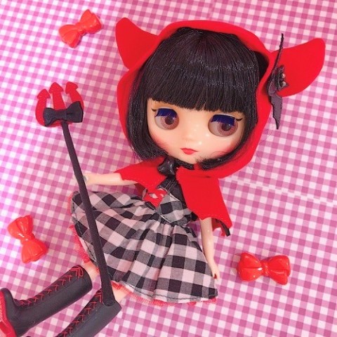 **Please note her outfit may have little mouldy / dusty from long storage.** The mouldy / dusty can be removed and no damage to it. Middie Blythe “Cute Little Dee” is our sweet little devil ! *FREE SHIPPING FEE* As hard as I try, it's hard for me to be mean... I look like a devil? But my heart is as pure as an angel's! Don't judge a book by it's cover. Cute Little Dee wants to become a gentle and fashionable fashion leader in the underworld. Her fashion style is just like Devi Delacour, but with a Cute Little Dee flair, creating a hell of a lovable style. Her clothes revolve around a monotone/red color scheme, with bat motifs and hearts and ribbons added. Her top is a no sleeve, monotone checkered dress with bat wings and a horned hood. Her accessories include a fork adorned with bat wings and lace up boots. Her face color is fair. Her hair is a bobbed brunette. Her eye shadow is brown, and her cheeks and lips are a bright rose pink. Her eyelashes are the default shape, with added blue and dark brown eye lines, a new style for middies. And her eyechips are pink. The illustration is a concept and does not represent the final product. Available September 22, 2017 We accept payment by PAYPAL, VISA and WESTERN UNION Thank you. Please don't hesitate to contact us at cctoyshop@yahoo.com.hk if you have any question about this product.