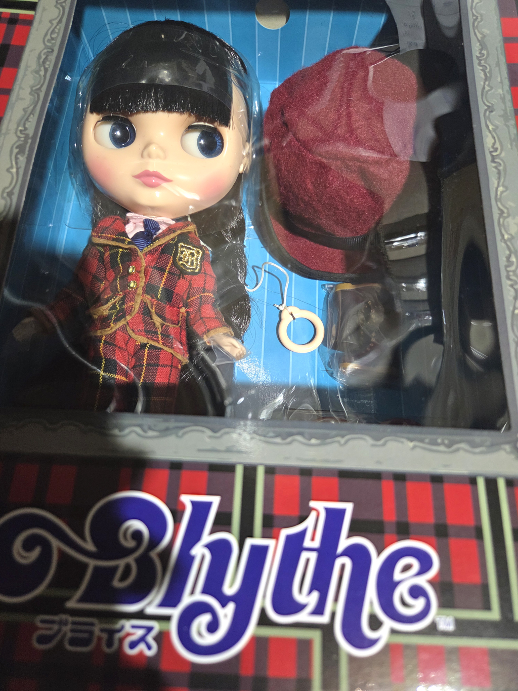 The focus of the party is the art, the life of the party is her! Neo Blythe Check It Out! final specifications *FREE SHIPPING FEE* *Shipping address are subject to the address of your PayPal transaction. Check It Out! loves art! It's a thrill to observe them and to collect them, the gallery is a wonderful place! Meeting artists and seeing new work is such a blast, I can't wait for the opening party! Check It Out!'s party fashion is a pair of checkered pantsuits, a tight, blue necktie, a silk hat, and an overall masculine style. Her jacket is made from a red, black, and yellow tartan fabric, with brown piping and an iconic golden "B" emblem embroidered on the breast. The golden buttons are the cherry on top of this elegant look. Her pants are cropped above her ankles, which are cuffed with brown piping to add a formal feel to it. Her inner shirt is pink to add pop to her ink blue necktie. Her hat is made with felt with a silk hat silhouette, with the edge of the brim has black piping and curled outward and adorned with a black ribbon. Her black short boots are a decorated with golden grommets. Her brunette hairstyle is strait and long with thinned bangs. Her eye shadow is dark brown, and her cheeks and lips are rose pink. Her right looking eyes are a special dark blue color. Her face type is Radiance+, and her face color is natural. Face Type: Radiance+ Skin Type: Natural Make up: Eyeshadow: Dark Brown/ Lips: Rose Pink/ Cheeks: Rose Pink Eye Color: Pink (front), Dark Blue (right, special color), Orange (front), Green (left) Hair Color: Black Eyelashes: default Ear rings: n/a Manicure: n/a Set Includes: Doll, shirt, jacket, pants, hat, tights, boots, stand Release Date: September 11th, 2015 (fri) We accept payment by PAYPAL, VISA and WESTERN UNION Thank you. Please don't hesitate to contact us at cctoyshop@yahoo.com.hk if you have any question about this product.