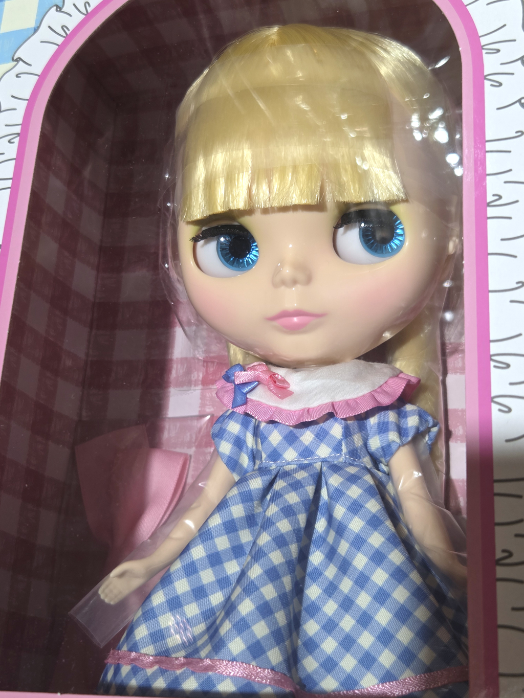Neo Blythe “Dolly Days – Weekend” Final Specs! *FREE SHIPPING FEE* *Shipping address are subject to the address of your PayPal transaction. My weekdays are full of tasks that keep me busy, but my weekends are a sweet escape filled with activities I truly enjoy. It’s the weekends I always look forward to! Get ready for a fun weekend together! ♪ The “Dolly Days - Weekend” collection is here, featuring a cheerful and appealing color combination of blue and pink. This dress showcases a playful and charming look with its large ribbon and oversized yoke, adding delightful detail. Her softly permed long hair offers the perfect opportunity to try out various hairstyles. Have plenty of fun together! Face Type: Radiance Evolution Face Color: Fair Makeup Eyeshadow: Vintage green Lip: Pink Blush: Pink Eye Color: blue (right), orange (front), green (left), pink (front) Eyelid: Default Eyelashes: Default/Black Hair Color: Blonde Piercing: None Manicure: None Set Contents Doll, Dress, Hairaccessory, Socks, Panties, Shoes, Stand (waist support) Release Date: Expected August 29, 2025 We accept payment by PAYPAL, VISA and WESTERN UNION Thank you. Please don't hesitate to contact us at cctoyshop@yahoo.com.hk if you have any question about this product.