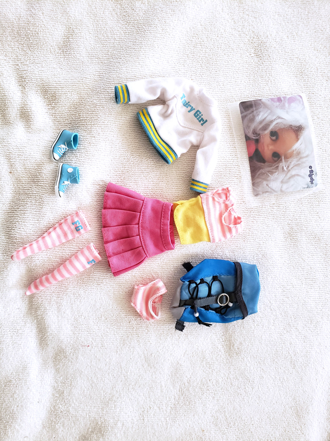 Hasbro Neo Blythe Silver Snow Outfit (OUTFIT ONLY DOLL NOT INCLUDED) "Not complete set" *FREE SHIPPING FEE* *Shipping address are subject to the address of your PayPal transaction. The set includes : sweatshirt, sleeveless tee shirt, skirt, backpack, socks, shoes, underpants, card We accept payment by PAYPAL, VISA and WESTERN UNION Thank you. Please don't hesitate to contact us at cctoyshop@yahoo.com.hk if you have any question about this product.