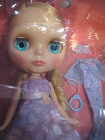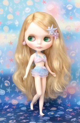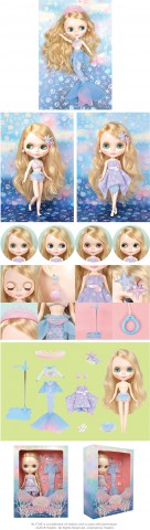 Neo Blythe Doll Mermaid Tasha *FREE SHIPPING FEE* *Shipping address are subject to the address of your PayPal transaction. A beautiful mermaid is reaching land! TOP SHOP Exclusive Neo Blythe Mermaid Tasha Final Specs! Seeing the glittering sands of the beach between the waves made me really want to walk on land. The ocean and its inhabitants are beautiful but for some reason, I'm really curious about life above the sea. It's almost as if I sense someone waiting for me there. Blythe is swimming into your arms as a beautiful mermaid! Her blue, purple and pink fashion, as well as accessories and motifs, are inspired by sea life. In mermaid form, the pink satin and organdy top is paired with a majestic fin glittering with tri-colored scales and a long tail. The fin is further decorated with aurora colored spangles and a chain of pink pearls. The extra accessories are a pink tiara and a pair of shell earring. Take off the fin and switch into a feminine bikini style! The top is a pink satin and organdy gathered bra that is tied at the back of the neck. Her bikini shorts are blue with a layering of blue and pink organdy frills. Her dress has a unique handkerchief hemline where two handkerchief-shaped fabric is sewn together. This dress goes perfectly with the pearl and starfish head accessory that comes with it. Pair it with some pearl white strap pumps and she's ready to walk! Her face type is Radiance Renew and her face color is snow. Her blonde hair is parted on the side and permed. Her eyeshadow is brown, and her eyelashes are default shaped and brown. Her cheeks and lips are pink. Two of her front facing eye chips are a special blue-green and light purple color. Face Type: Radiance Renew Face Color: Snow Makeup: Brown eyeshadow, pink lip, pink cheek Eye Color: Blue-green (front *special color), Blue (right), light purple (front *special color), green (left) Eyelid: default Eyelash: Brown Hair Color: Blonde Earrings: Shell Manicure: N/A Set Includes: Doll, mermaid fin, dress, bikini, tiara, head accessories, earrings, shoes, and stand (17.5 cm) *Details are subject to change. Release date: June 29th, 2018 We accept payment by PAYPAL, VISA and WESTERN UNION Thank you. Please don't hesitate to contact us at cctoyshop@yahoo.com.hk if you have any question about this product.