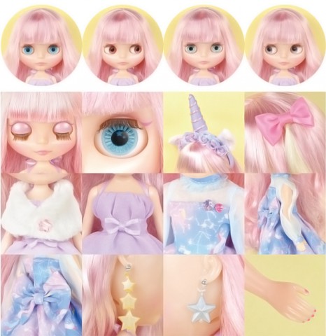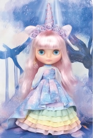 CWC Exclusive 17th Anniversary Neo Blythe Unicorn Maiden Final Specifications! *FREE SHIPPING FEE* *Shipping address are subject to the address of your PayPal transaction. This years anniversary doll is based on the elusive and glorious Unicorn, a magical creature that only opens its heart to pure souls. Unicorn Maiden's fashion is pure fantasy, her horn hair accessory and night sky dress is the main focus of her outfit. She lives deep in her forest, and unbeknownst to the world, casts miracles and happiness into the air so that it can land on those deserving of it. Her magical dress that shows her powers can also be arranged into formal, casual, and girly looks! Her overdress has a short front and long fishtail backend, and her pastel tiered skirt can be worn by itself or taken off for a variety of different looks. Wear the entire dress for a formal look, or wear just the tiered skirt and her boots for a change! The tiered skirt can even be worn as a dress itself. Switch it up by wearing just the frilly dress, the fur cape, and hair extensions too! The asymmetrical ear piercings, ribbon belt, mesh tights, strap shoes and middle boots, hair extensions, and other fashion accessories complete the look! Her face type is Radiance Renew, and her face color is a translucent cream. Her hair color is a brand new purplish pink (that comes with a pair of white extensions). Her hair is long, slightly permed, and cut straight across the bangs. Her make up is youthful and lovely. Her eye shadow is pink, with the lower part of the eye hole highlighted pearl white, and a thin purplish pink eyeliner drawn along the edges of the eyes. Her eyelids are a pearl pink, and her eyelashes are a special light brown. The eye chips are all special! Starting with a light blue with embedded holograms, it continues with a light pink, a light blue with stars printed, and a light pink. Her cheeks are pink, and her lips are blurred pink with a lining in the corners of the mouth. Face Type: Radiance Renew Face Color: Cream (Translucent) Makeup: Pearl Pink eye shadow (pink-purple eyeliner around the edges, with white highlights at the bottom of the eyehole), pink lips with the edges blurred, pink cheeks Eye Color: light blue(front, with hologram), light pink (right), light blue (front, with star prints), light purple (left) *All special colors Eyelid: Pearl pink Eyelash: Light brown *special color Hair Color: Purplish pink Earrings: A pair of silver and yellow star earrings Manicure: Pink Set Includes: Doll, dress, overdress, belt, cape, socks, hat, hair extensions, earrings, tights, pannier (short, long), and dress stand (14 cm) *Final product may differ. Available August 4th, 2018 (Sat) We accept payment by PAYPAL, VISA and WESTERN UNION Thank you. Please don't hesitate to contact us at cctoyshop@yahoo.com.hk if you have any question about this product.
