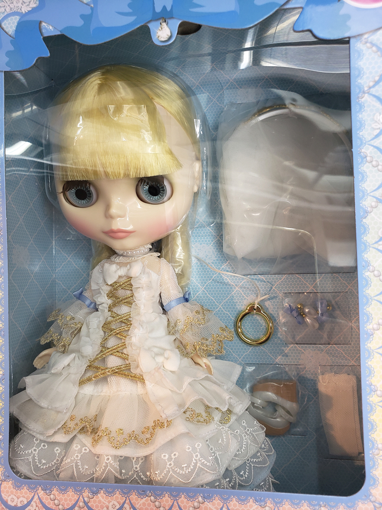 Hasbro Exclusive Neo Blythe Charming Crystalline final specs *FREE SHIPPING FEE* *Shipping address are subject to the address of your PayPal transaction. Today is my wedding. The wedding dress I chose has my favorite Lolita style. On my special day I want our guests to spend the day as if they were in a dreamland. Charming Crystalline features a Lolita-style wedding dress. ♡ The white dress is accented with light blue and gold. The tiered dress has a laced from with romantic frills and lace. ★ The sheer princess sleeves that bells out from the elbows. The skirt has added volume with a tulle petticoat. The dress has a short train with a ribbon that extends to a midi length skirt. The pear white tiara has gold flowers with a long veil. She wears tear drop pearls with blue ribbon accents. She wears long bloomers under her dress. The face type is Radiance Renew, the face color is Snow. She has long blonde hair with bangs. She has bright olive green eyeshadow and eyelids, light brown eyelashes, and pink cheeks and lips. She has one special front facing eye color in light blue and special light green with a gaze to the right. The eye change ring is gold colored. Face Type: Radiance Renew Face Color: Snow Makeup: Light olive green eye shadow, pink lips and cheeks Eye Color: Light blue, light green, pink, stock green Eyelids: Light olive green (plastic color) Eyelashes: Special light brown Hair Color: Blonde Earrings: Pearl and ribbon Manicure: Pink Set Includes: Doll, dress, headdress, earrings, petticoat, bloomers, socks, shoes, stand. * Final product may differ from images. Release Date: December 18, 2020 We accept payment by PAYPAL, VISA and WESTERN UNION Thank you. Please don't hesitate to contact us at cctoyshop@yahoo.com.hk if you have any question about this product.
