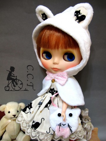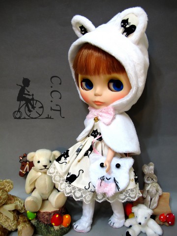 Blythe doll dress set "meow meow meow" (White) (cat ear phoncho with pink knot and bell, kitty print dress, cat shape plush bag, cat paw furry boot) Total 4pcs in this item) We accept payment by PAYPAL, VISA and WESTERN UNION Thank you. Please don't hesitate to contact us at cctoyshop@yahoo.com.hk if you have any question about this product.