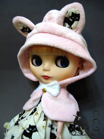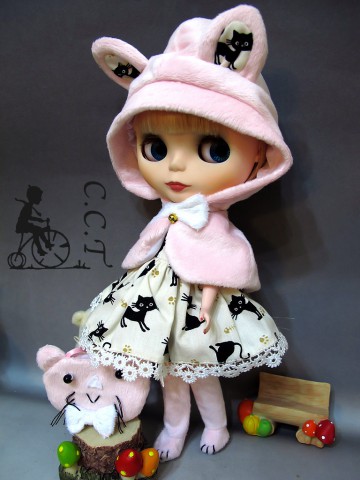 Blythe doll dress set "meow meow meow" (Pink) (cat ear phoncho with white knot and bell, kitty print dress, cat shape plush bag, cat paw furry boot) (Total 4pcs in this item) We accept payment by PAYPAL, VISA and WESTERN UNION Thank you. Please don't hesitate to contact us at cctoyshop@yahoo.com.hk if you have any question about this product.
