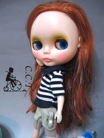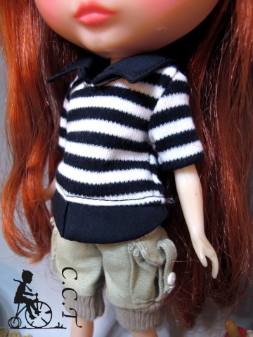 blythe doll outfit black and white stripe polo tee and knee length pants (khaki) (Total 2pcs in this item) We accept payment by PAYPAL, VISA and WESTERN UNION Thank you. Please don't hesitate to contact us at cctoyshop@yahoo.com.hk if you have any question about this product.