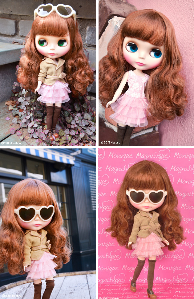 Neo Blythe Monique Magnifique *FREE SHIPPING FEE* *Shipping address are subject to the address of your PayPal transaction. Beautiful and brash, Monique has confidence and strength. But you know, with strength and beauty she also has the same delicate kindness in her heart. Monique's unique way of life is very inspiring. She's admired by everyone for being just who she is! She's truly "magnifique"! Her sweet style is girly with an edgy twist. The organza ruffle dress is very girly and pink. Her faux leather jacket is beige. The hard styling is very cool, but the details are sweet and lovely. She has new style bootie shoes. Her heart shaped sunglasses are white with brown lenses. Her warm brown hair has a fluffy perm giving her fashionable volume. She has a special light blue, front facing eye chip. She has brown eyeshadow and dark pink lips. She has fair skin with Radiance face type. Her specialcharm point is the cute beauty mark by her mouth! Face Type: Radience Skin Type: Fair Make-up: Light brown eyeshadow, Pink lips and blush. Eye color: Light blue (*special color forward gaze), Blue, Pink and Green Hair Color: Warm brown The set includes: Dress, jacket, knee high socks, sunglasses, shoes, stand. Release date: April 19, 2013 We accept payment by PAYPAL, VISA and WESTERN UNION Thank you. Please don't hesitate to contact us at cctoyshop@yahoo.com.hk if you have any question about this product.