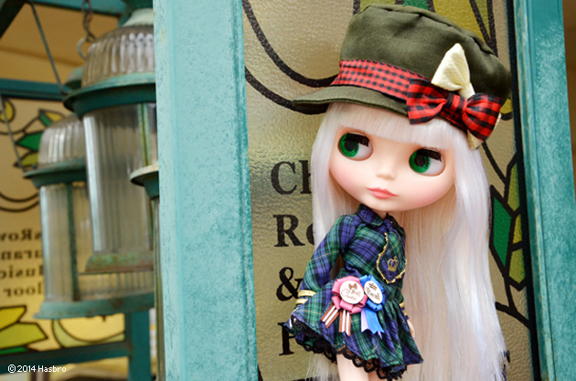 Neo Blythe “Cadence Majorette” is the new military chic girl! *FREE SHIPPING FEE* *Shipping address are subject to the address of your PayPal transaction. It's time to show off your special baton twirling at the parade! Wearing your sharp costume you feel sharp and proud. Watch her twirl the baton around and around! The elegant combination of girly and military style express the lovely style of majorette for Cadence. The drop waist of her uniform is accented with lovely pleats and a sharp collar and cuffs. The deep purple and green check dress show her spirit along with the two accenting ribbons. She has striped socks and four strap shoes. Her fun cap really tops off the outfit with a unique military flare. She has long, white hair with bangs. She has natural makeup with brown eyeshadow, and pink cheeks and lips. She has special light brown eye chips facing forward. She has a Radiance + face in fair color. Face Type: Radiance + Skin: Fair Makeup: Brown eyeshadow, pink lip and blush. Eye Color: Brown, blue, orange and green. Hair Color: Off White The Set Includes: Doll, dress, hat, shoes, socks, shorts, and stand. Release Date: October 17, 2014 We accept payment by PAYPAL, VISA and WESTERN UNION Thank you. Please don't hesitate to contact us at cctoyshop@yahoo.com.hk if you have any question about this product.