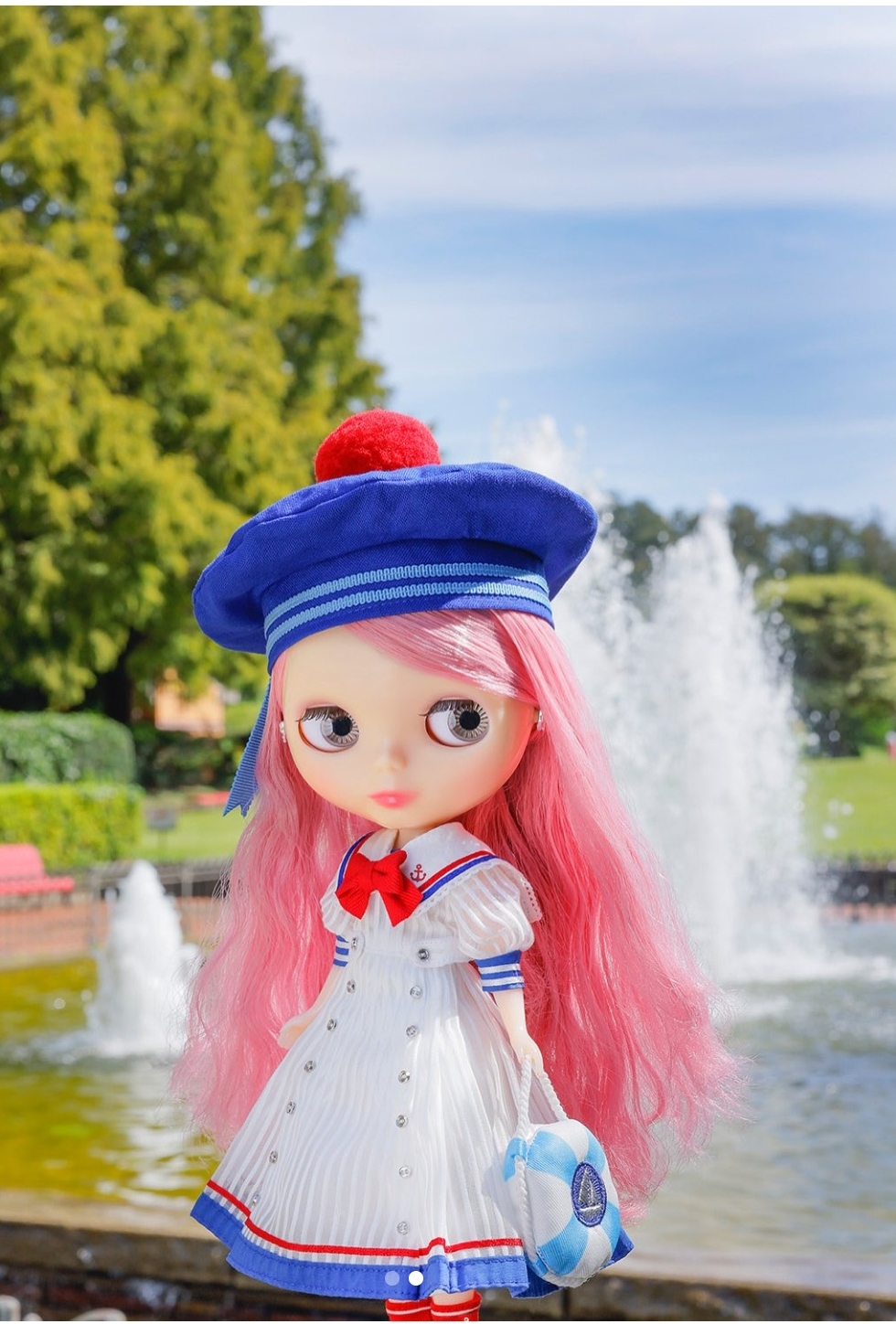 Announcement of the final specifications for the CWC Limited Edition Neo Blythe “Sailing Dominique”. *FREE SHIPPING FEE* *Shipping address are subject to the address of your PayPal transaction. On sunny weekends, I always head to the Grand Basin pond in the Luxembourg Gardens. I rented a little antique sailboat and let it drift across the water. When it nears the pond’s edge, I give it a gentle nudge with a long stick to send it back on course—it’s so much fun! Hi ho! All around me, children are just as excited, playing the same game! Dominique of the "Voiliers du Luxembourg" looks lovely in her fresh, breezy marine style. Dominique's white dress is perfect for a sunny, peaceful day. Made of a light, striped fabric, it has a sweet, subtle sheerness. The square sailor collar is accented with deep blue and red lines and a cute anchor motif, while a little red ribbon at the neckline adds a charming final touch. The skirt has pretty pleats that create a soft, flared silhouette, with matching lines at the hem to tie the whole look together. For a fun, new look, she can switch into a sweet blouse and culottes! The blouse has soft, voluminous sleeves with gathered cuffs, and the yacht-print fabric and striped tie give it a cheerful sailor-inspired feel. The culottes are so playful with their attached suspenders, making her look ready for a little adventure! Dominique's accessories are just as adorable. She wears a blue beret with a bright red pom-pom and carries a bag that looks like a life buoy. Her red socks have cute little anchor motifs, and her shoes are a stylish black with four straps. Even her eye-change charm has a tiny yacht on it! Her makeup is gentle and highlights her charming personality, and her hair is a beautiful new shade of mauve pink, giving her an elegant, Parisian-inspired flair. Face Type: Radiance Evolution Face Color: Translucent cream Makeup -Eyeshadow: Taupe Pink -Lips: Pink (with a plump shape) -Blush: Pink Eye Colors (All Special Colors) -Gray (right) -Light blue (front, with hologram) -Light magenta (left) -Aqua green (front) Eyelids: Taupe Pink (mold color) Eyelashes: Special type / Black Hair Color: Mauve Pink (new color) Earrings: Yes (Silver ribbon-shaped) Manicure: Yes (Pink beige) Set Includes: -Doll, dress, blouse, culottes, hat, petticoat, socks, bag, earrings, shorts, shoes, stand (waist support) Release date: Monday, September 29, 2025 We accept payment by PAYPAL, VISA and WESTERN UNION Thank you. Please don't hesitate to contact us at cctoyshop@yahoo.com.hk if you have any question about this product.
