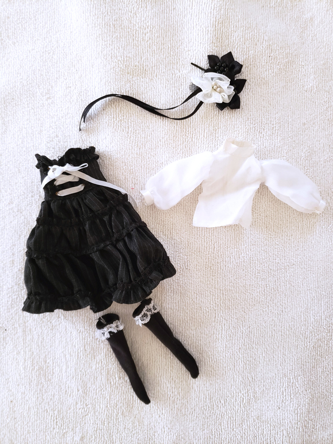 CCT Momoko doll outfit gothic punk lace up black & white dress set. (hair accesories, long sleeve white shirt, lace up skirt and socks) (Total 4 items) (OUTFIT ONLY DOLL NOT INCLUDED) *FREE SHIPPING FEE* *Shipping address are subject to the address of your PayPal transaction. We accept payment by PAYPAL, VISA and WESTERN UNION Thank you. Please don't hesitate to contact us at cctoyshop@yahoo.com.hk if you have any question about this product.