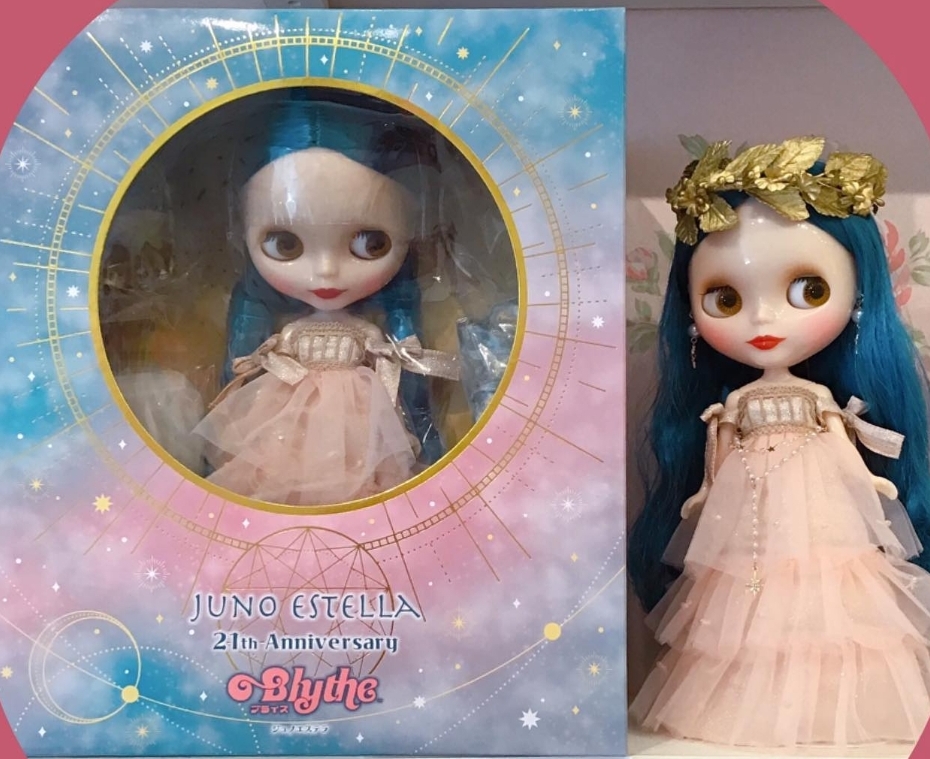 CWC Exclusive 21st Anniversary Neo Blythe “Juno Estella” *FREE SHIPPING FEE* *Shipping address are subject to the address of your PayPal transaction. Venus, goddess of the heavens, twinkles in the pink morning sky. At night the stars in the universe gather together to remind us of the infinite possibilities of tomorrow. It's time to make a wish for all of us, upon the stars. Venus at Dawn Style Pink Dress The combination of pink tulle and gold fabric is beautiful in this long dress. The gold braid on the top, ribbons on both shoulders, and pink cut beads scattered on the tulle skirt express tenderness. Pearl and star motifs are used for the chain belt that accentuates the dress. The head accessory is a crown with gold-colored flowers and leaves that looks beautiful against the ink-blue hair. Evening Star Style Blue Dress This fantastic long dress is made of blue chiffon fabric with gold silk print all over. The asymmetrical draping and folded ribbon-like decorations hanging from the waist give the dress an elegant design. The shoulders of the long cape are adorned with gold curly roses. Head accessories coordinate with the new tiara, which is designed with a scattering of stars★. For accessories, we selected items with gold as the key color that would go with both fashions! Necklace and earrings designed with pearl and star motifs, tulle petticoat, and net tulle high socks with gold picot lace trimmed at the opening, and gold pumps. The face type is Radiance Evolution and the face color is translucent cream. Hair color is Ink Blue, a new color, and hairstyle is long hair with a center parted perm. Makeup is done in an elegant image. The eyeshadow is light brown, the lips are a clear reddish burgundy with gloss, and the blush is pink. The eyelids are light brown (molded color), the same color as the eye shadow, and the eyelashes are special black. All eye colors are set in special colors! Blue-green (front), light brown (right), blue (front), purplish pink (left). Nails are pink. Eye change charms are star motifs. The support and base of the stand are clear and gold, and the prop is gold-colored. Face Type: Radiance Evolution Face Color: Translucent cream. Makeup: Eye shadow: light brown, Lip: wine red (clear type plumping mask), Blush: pink Eye Color: blue green (front), light brown (right), blue (front), pink (left) *All special colors Eyelid: Light brown (molded color) Eyelashes: Special spec black (long eyelashes) Hair color: Ink blue *New color Earrings: Pearl and star motif Manicure: Pink Set includes: Doll, dress (pink and blue), cape, leaf crown, star-shaped tiara, necklace, earrings, chain belt, and a star-shaped tiara, shorts, socks, shoes, short stand (approx. 13 cm high) Release date: 30 September 2022. We accept payment by PAYPAL, VISA and WESTERN UNION Thank you. Please don't hesitate to contact us at cctoyshop@yahoo.com.hk if you have any question about this product.
