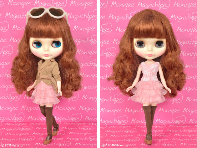 Neo Blythe Monique Magnifique *FREE SHIPPING FEE* *Shipping address are subject to the address of your PayPal transaction. Beautiful and brash, Monique has confidence and strength. But you know, with strength and beauty she also has the same delicate kindness in her heart. Monique's unique way of life is very inspiring. She's admired by everyone for being just who she is! She's truly "magnifique"! Her sweet style is girly with an edgy twist. The organza ruffle dress is very girly and pink. Her faux leather jacket is beige. The hard styling is very cool, but the details are sweet and lovely. She has new style bootie shoes. Her heart shaped sunglasses are white with brown lenses. Her warm brown hair has a fluffy perm giving her fashionable volume. She has a special light blue, front facing eye chip. She has brown eyeshadow and dark pink lips. She has fair skin with Radiance face type. Her specialcharm point is the cute beauty mark by her mouth! Face Type: Radience Skin Type: Fair Make-up: Light brown eyeshadow, Pink lips and blush. Eye color: Light blue (*special color forward gaze), Blue, Pink and Green Hair Color: Warm brown The set includes: Dress, jacket, knee high socks, sunglasses, shoes, stand. Release date: April 19, 2013 We accept payment by PAYPAL, VISA and WESTERN UNION Thank you. Please don't hesitate to contact us at cctoyshop@yahoo.com.hk if you have any question about this product.