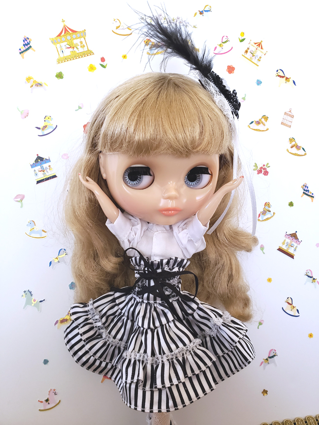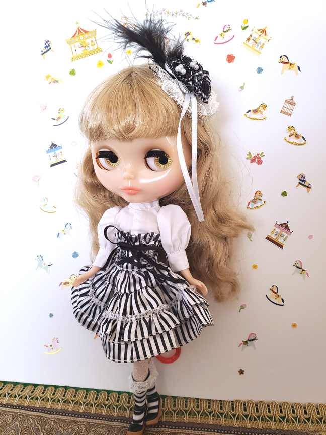 CCT Neo Blythe doll gothic style stripe dress set "Black and white" (hair accessories, puff long sleeve white shirt, lace up skirt , lace socks) Total 4pcs in this items. We accept payment by PAYPAL, VISA and WESTERN UNION Thank you. Please don't hesitate to contact us at cctoyshop@yahoo.com.hk if you have any question about this product.