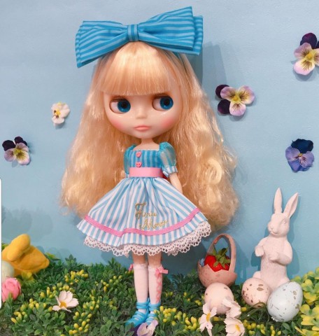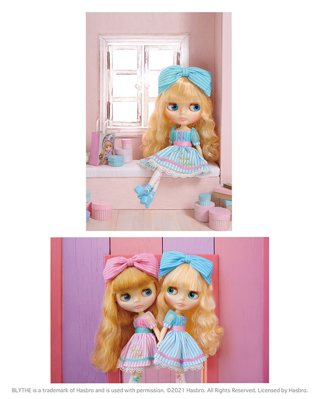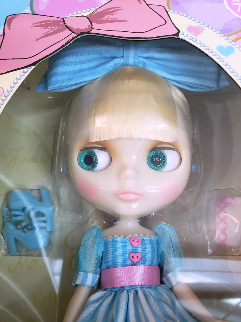 CWC Ex. Neo Blythe “Hello Again Junie Moonie Cutie” illustration announced! *FREE SHIPPING FEE* *Shipping address are subject to the address of your PayPal transaction. We are delighted to announce that Junie Moonie Cutie, the popular cover girl for the Junie Moon shop, is back in a new way. In response to the many requests from her fans, she returns to the limelight in a new color way. Her updated name is “Hello Again Junie Moonie Cutie”. She’s fresh new girl with blue fashion point clothing! “Hello Junie! You are always so cute and kind. You are a special person who brings happiness to many people. We look forward to playing with you again! I will always cherish you for connecting my heart and mind.” The fashion of “hello again Junie Moonie Cutie” is a sweet pink and blue color coordination. The dress has light blue and blue stripes. The sleeves are sheer puff sleeves. The skirt is embroidered with the “Junie Moon” shop logo written by Blythe Creative Producer, Junko Wong. She has pink accent heart buttons, a big bow on the back and pink ricrac hem. Her fashion accessories include a large hair ribbon, blue heart-shaped earrings, high sicks with lace up ribbon print, and a pair of matching shoes. She wears pink and white striped bloomers underneath. Her face type is Radiance Renewal. Her face color is Translucent Cream. Her hairstyle is long, perm with fringe. Her hair color is blonde. She has brown eyeshadow with light brown eyelids. She las pink cheeks. Her lips are pink with a plump shape make up. She has brown front eyes, mint green left eyes, pink with a heart print center front facing, light blue right gaze. * She has four special colors in the same set, The eye change charm is printed with Blythe and Junie Moon logos. The accessories include a miniature-sized shopping bag and paper accessories for the doll packaging, so you can assemble and play with them! Release Date: March 2021 We accept payment by PAYPAL, VISA and WESTERN UNION Thank you. Please don't hesitate to contact us at cctoyshop@yahoo.com.hk if you have any question about this product.