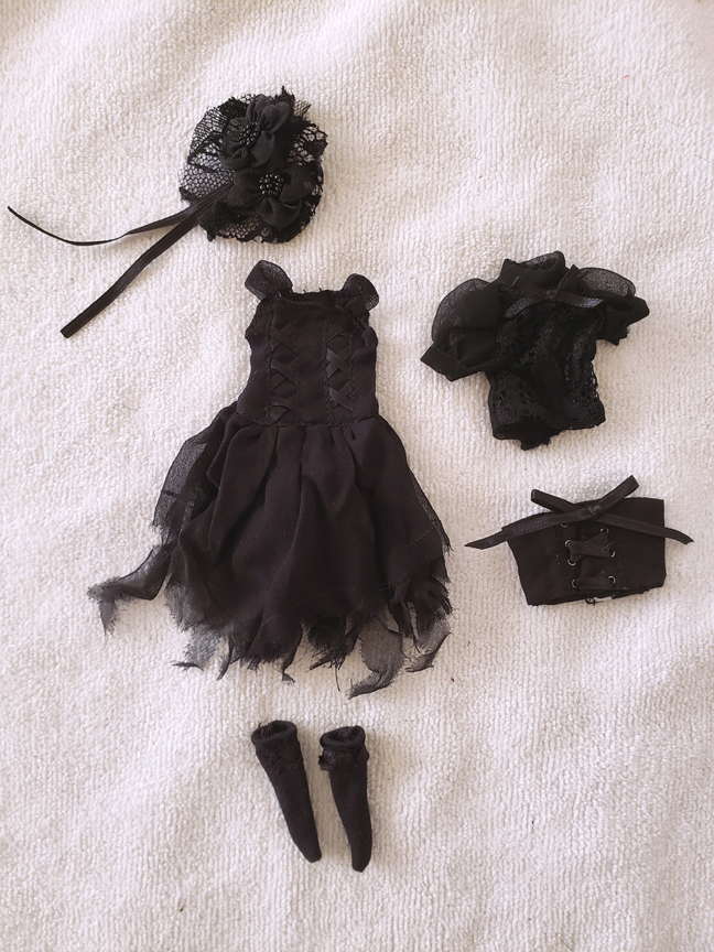 CCT Neo Blythe doll Lolita punk style dress set "Black" (hair accessories, sleeveless lace up layer slip dress, lace top, corset belt and socks) Total 5pcs in this items. We accept payment by PAYPAL, VISA and WESTERN UNION Thank you. Please don't hesitate to contact us at cctoyshop@yahoo.com.hk if you have any question about this product.